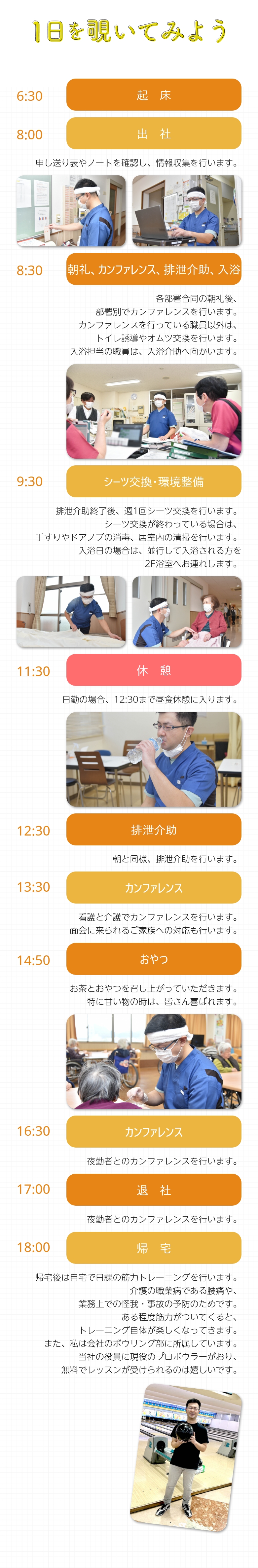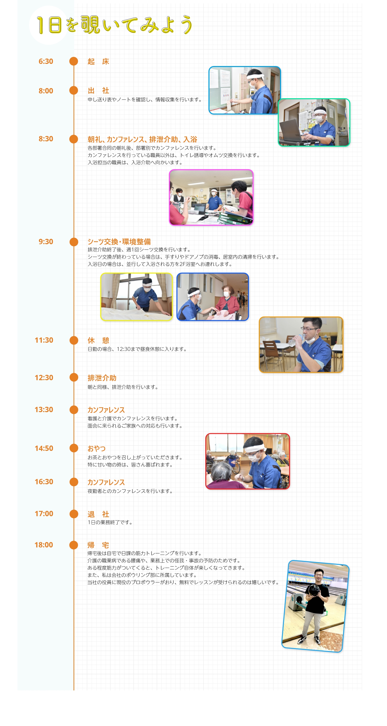 祖父母の介護経験から抱いていた「介護は比較的ゆったりしたもの」というイメージとは異なり、忙しさの中にもやりがいを感じられる職場だと感じました。 -